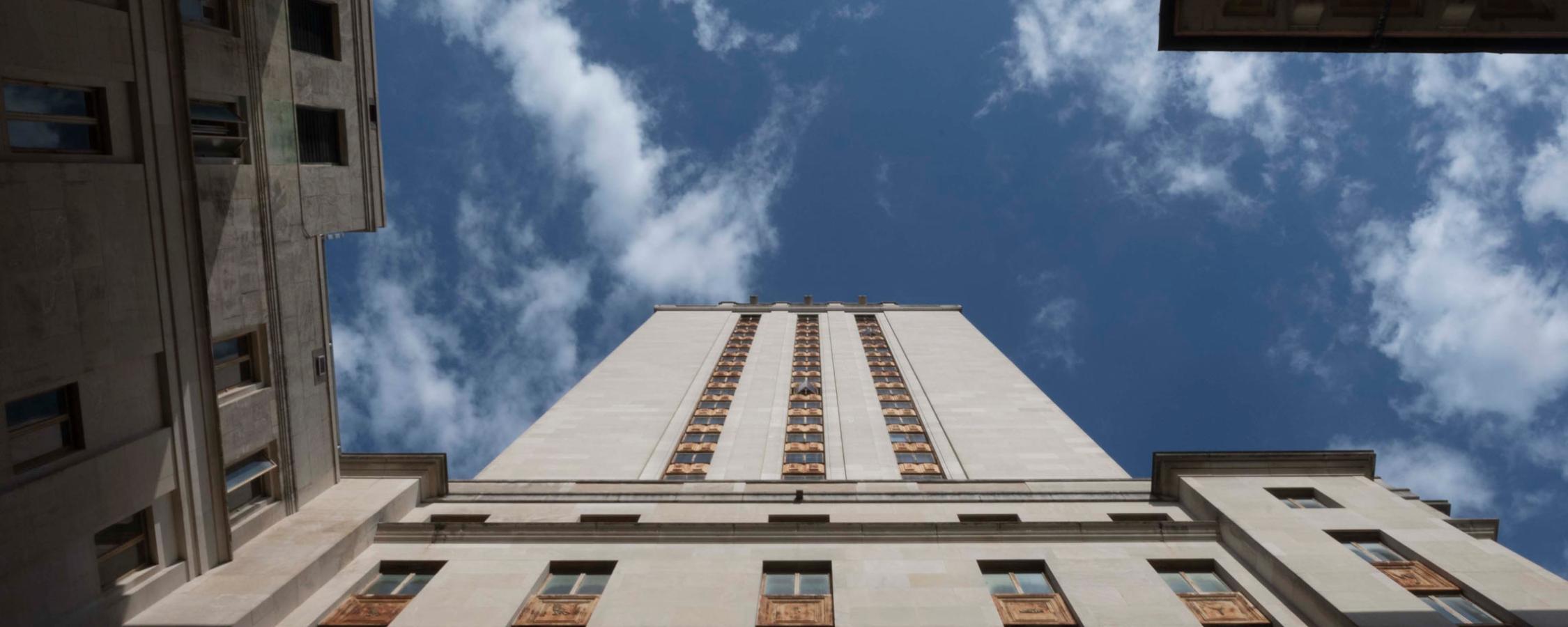 Looking up at UT Tower